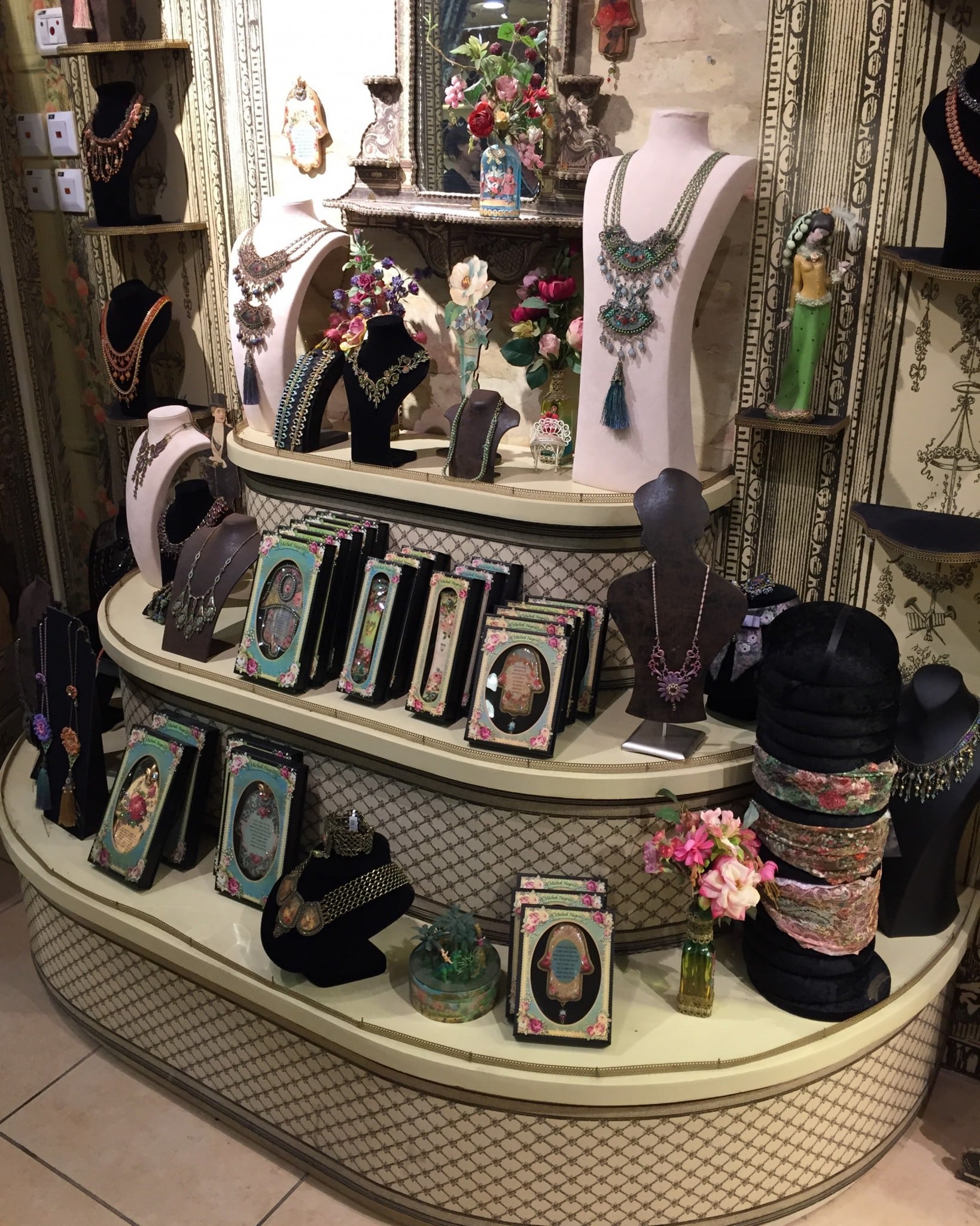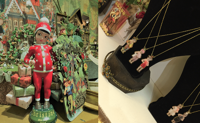 Кафе-галерея на первом этаже кукольного дома поразила меня уникальными мелочами, расставленными тут и там, коллекцией одежды, украшений и домашнего декора. Все предметы будто сошли с открыток моей бабушки, а волшебные цветные камни словно высыпались из её брошек. Куклы – Стесняшки в виде кулонов, оригинальные календари, мягкие полотенца, и много–много украшений – все эти вещи несли в себе неповторимый, диковинный стиль. Особое ретро от Михаль Негрин. Её сказочный мир. Её любовь.