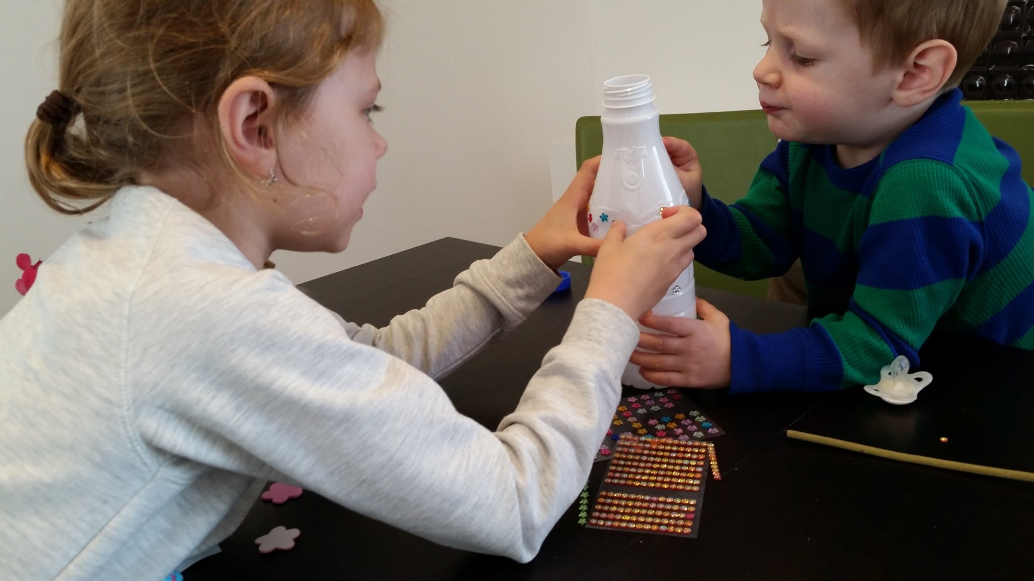- למרות הפרשי הגילאים (7.5, 3) כל אחד יצר עם אותם החומרים